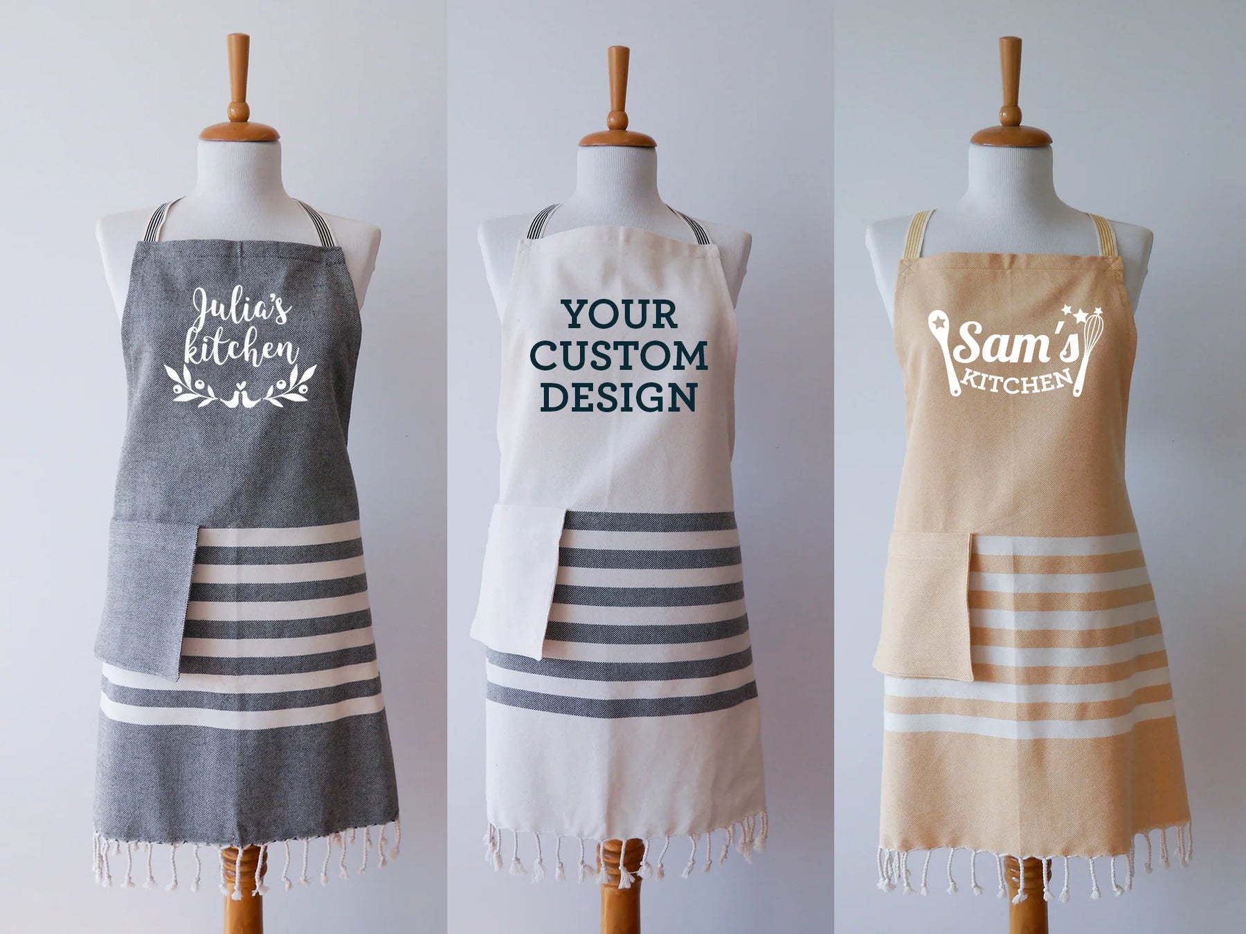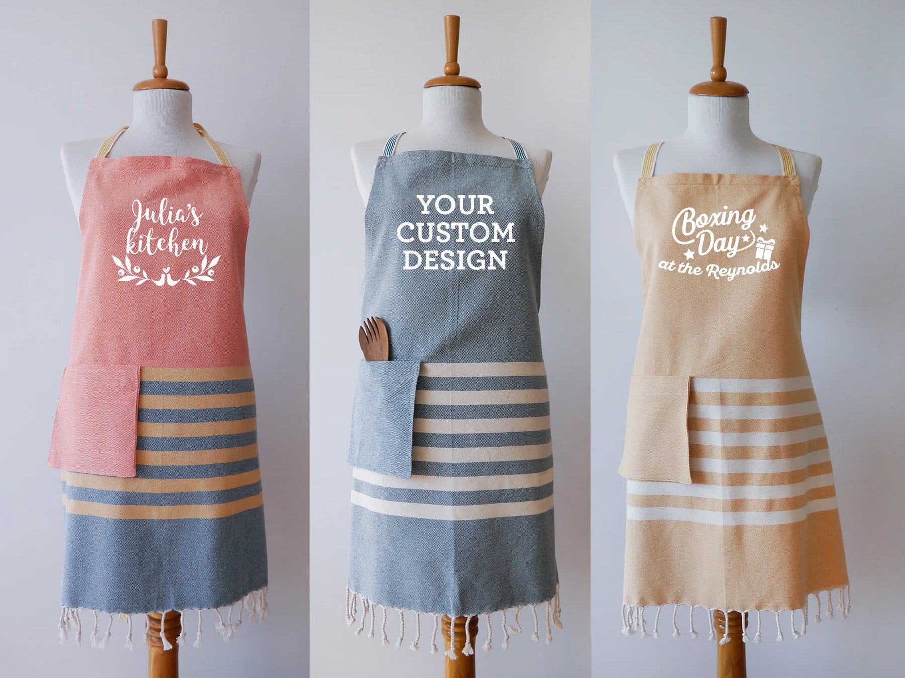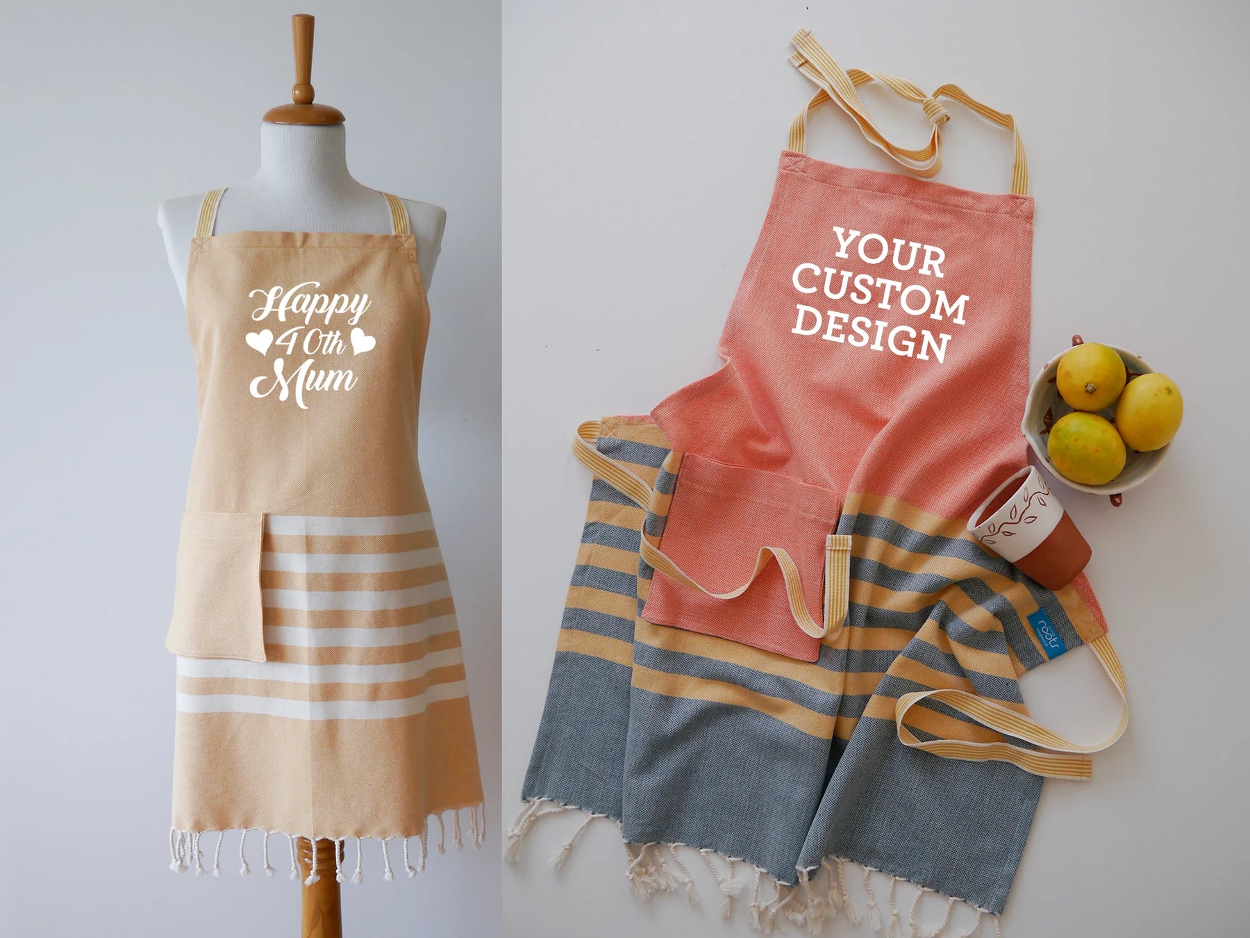 Beautiful personalised aprons made up of traditional woven cotton fabric.