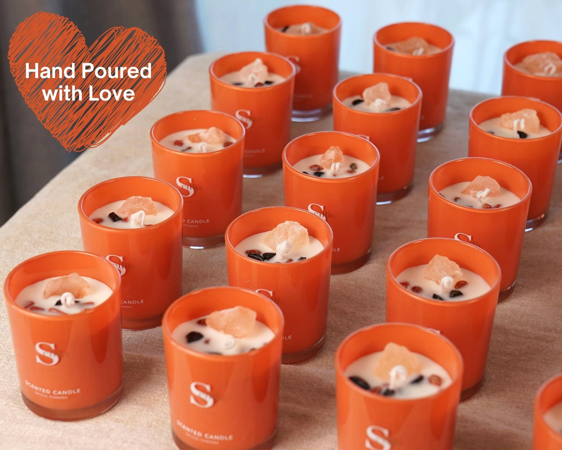 🧡Invite moments of calmness and bliss as the scented candle delightfully glows with warmness and tranquility. Embrace the aroma of a unique blend of essential oils with Orange and Ginger Blossom, Lilly Orchid, Myrtus Communis and Ambergris for a tranquil relaxed spiritual space. A delightful combination for the relief of occasional anxiety, stress, and tension and add sweet delight to your life.