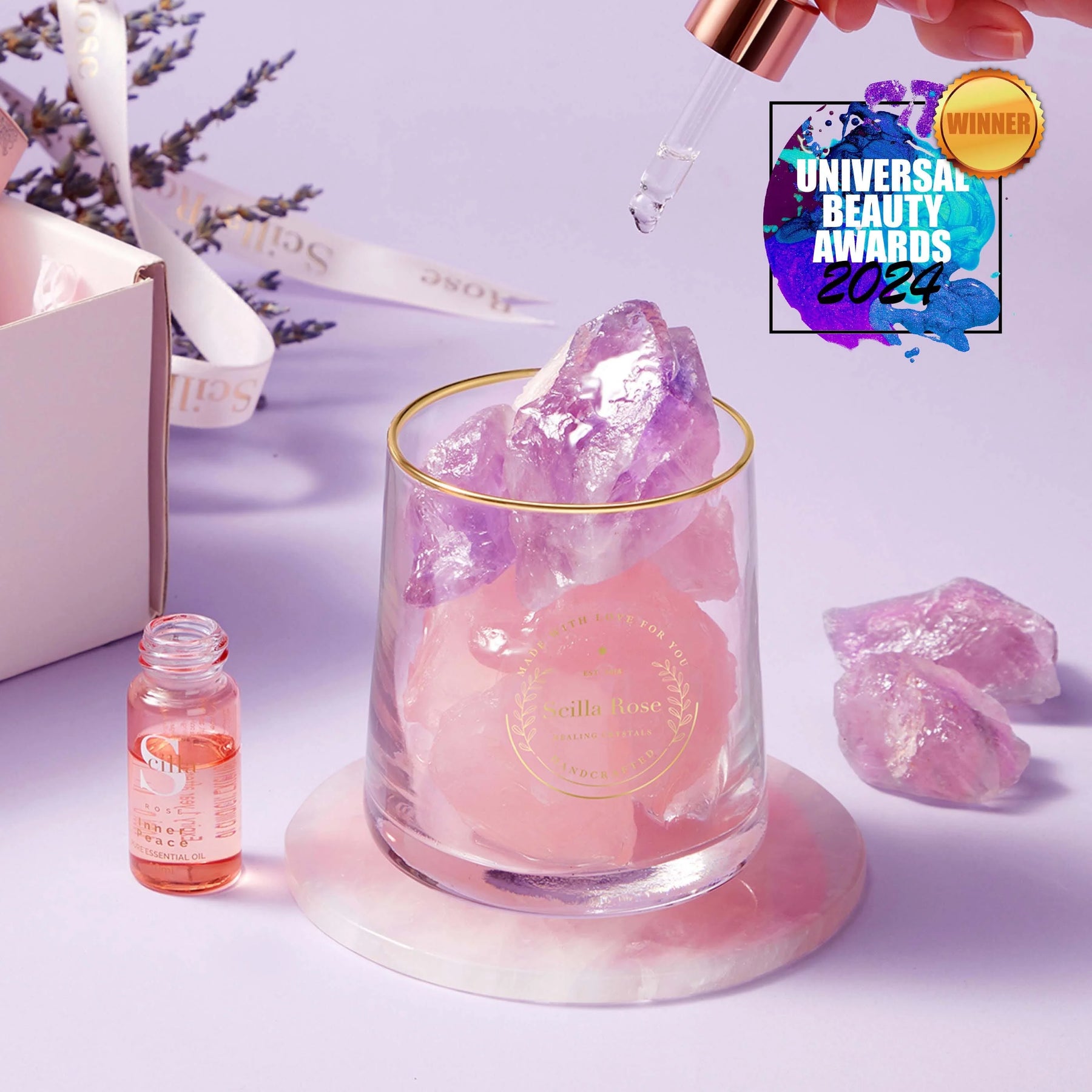 Relax, unwind, and restore balance with this luxury crystal diffuser set, blending the healing energy of Amethyst and Rose Quartz with the soothing aroma of Lavender Essential Oil. Perfect for creating calm and harmony at home.