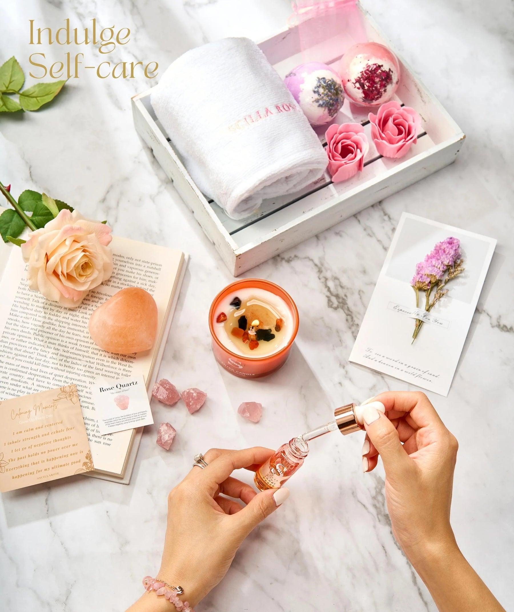 A refined blend of luxury and wellness, beautifully packaged in a reusable gift box with affirmations. Hand-assembled in Lincolnshire, UK using premium, handmade, and natural products.