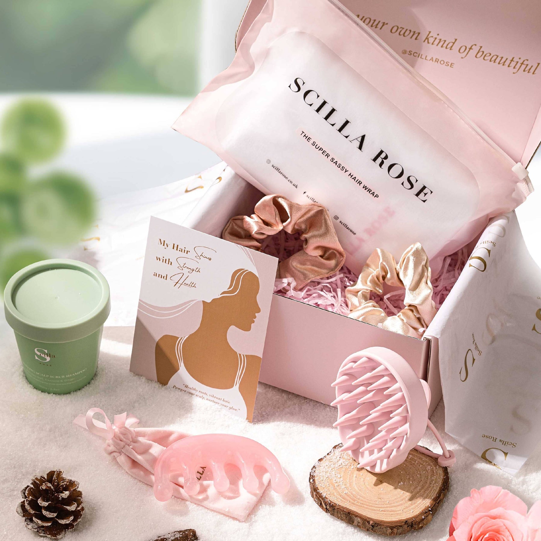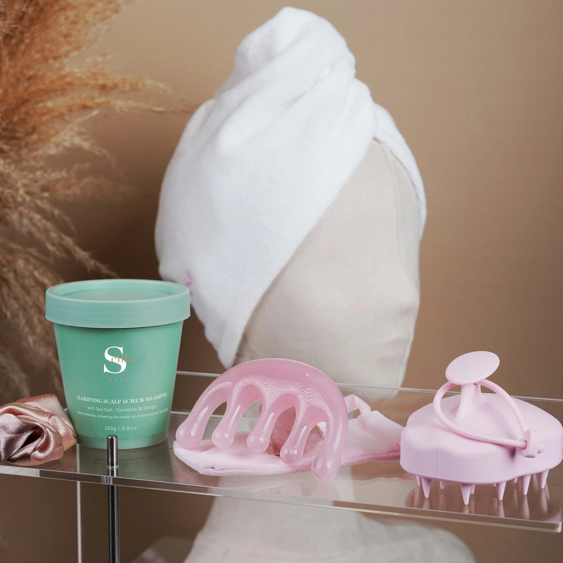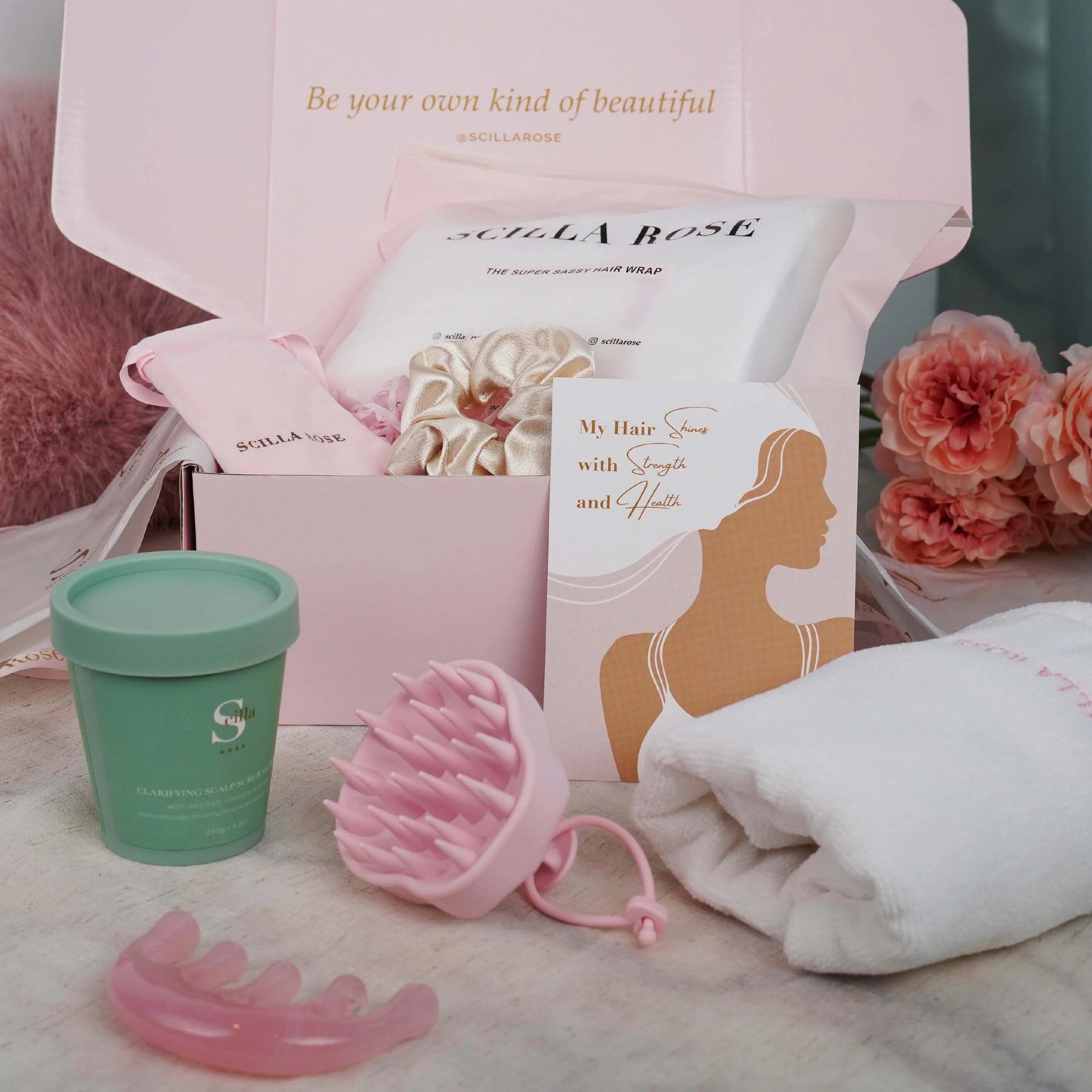 A complete at-home hair and scalp care set combining quality, relaxation, and elegance. Beautifully packaged and ready for gifting—ideal for employee wellness programs, client appreciation, or personal indulgence.
