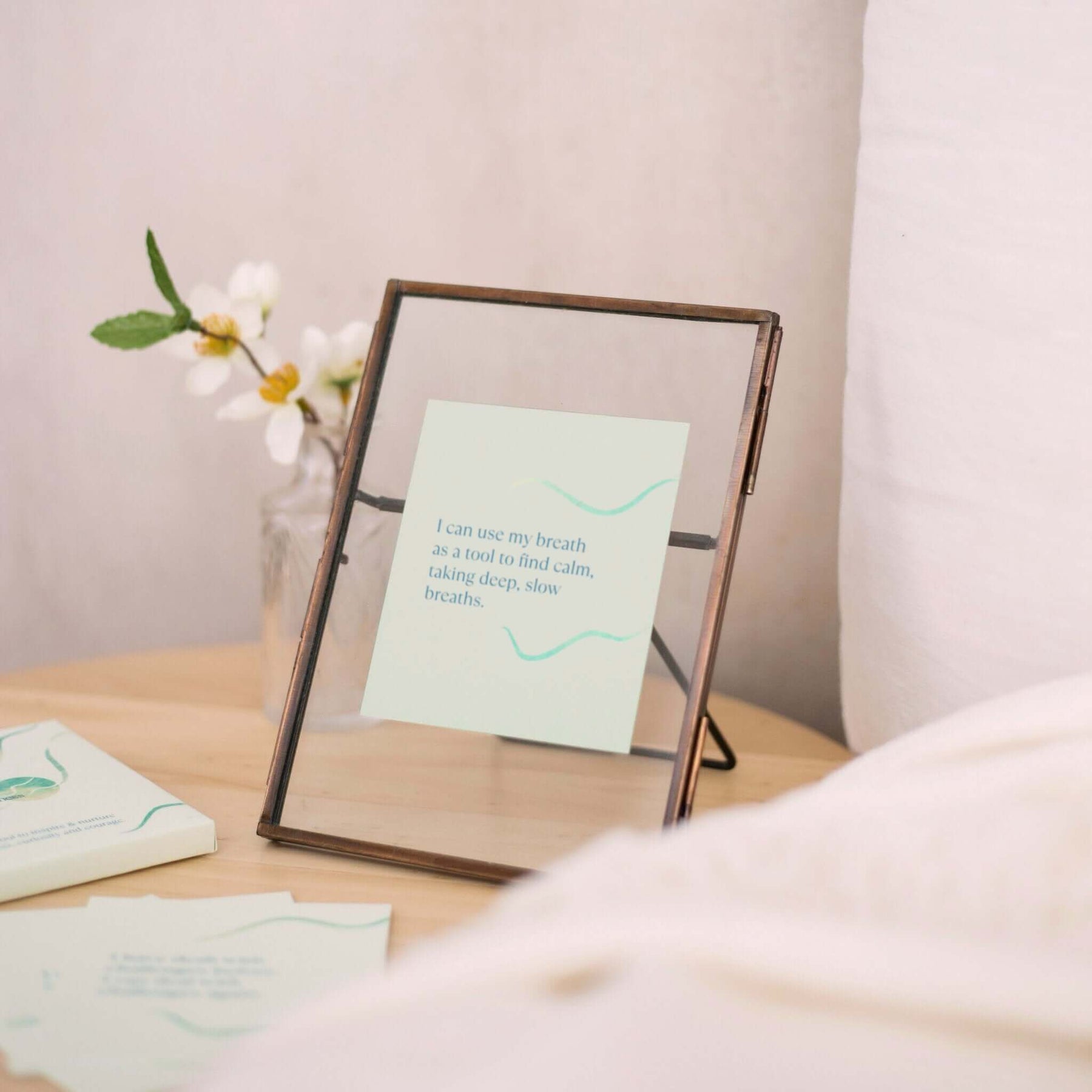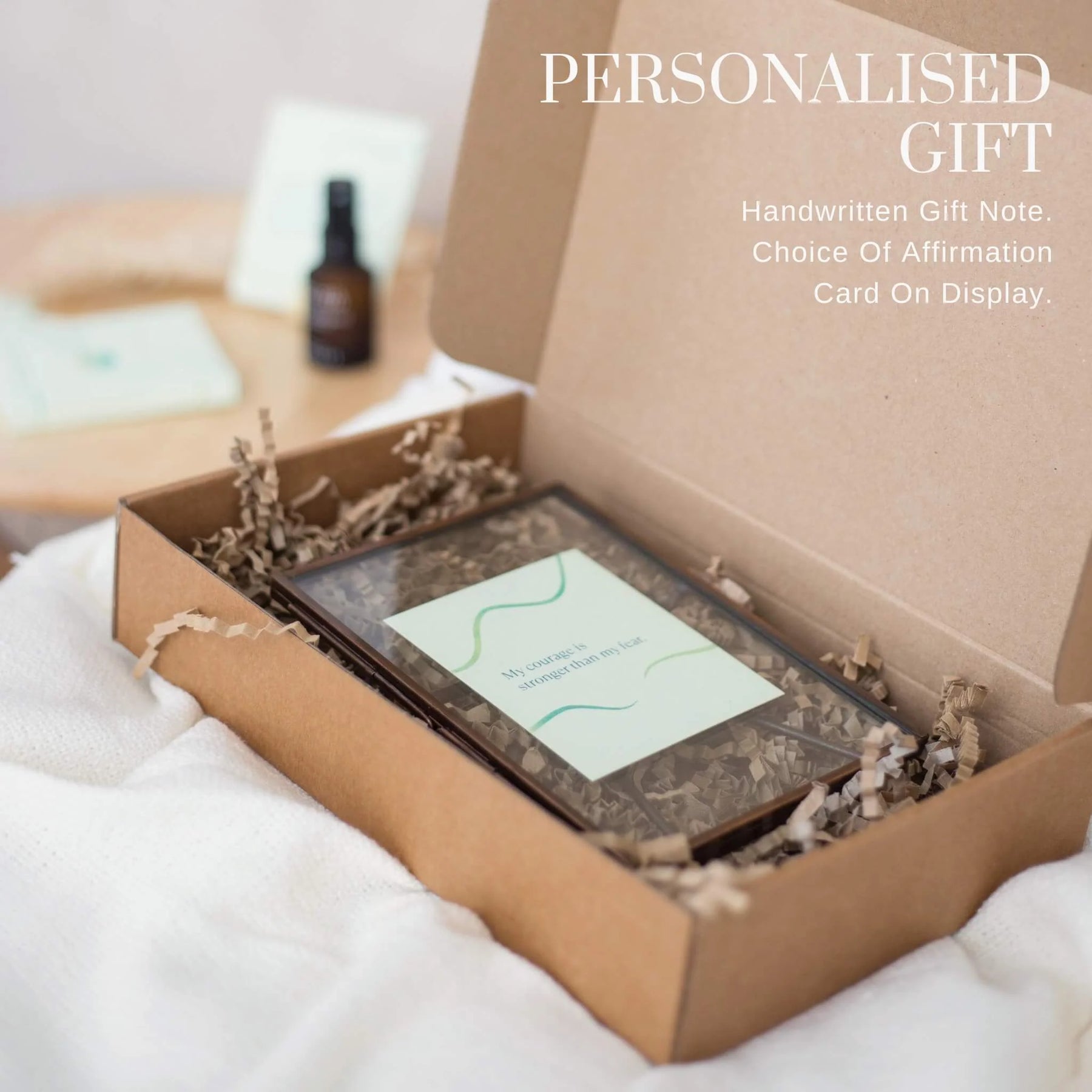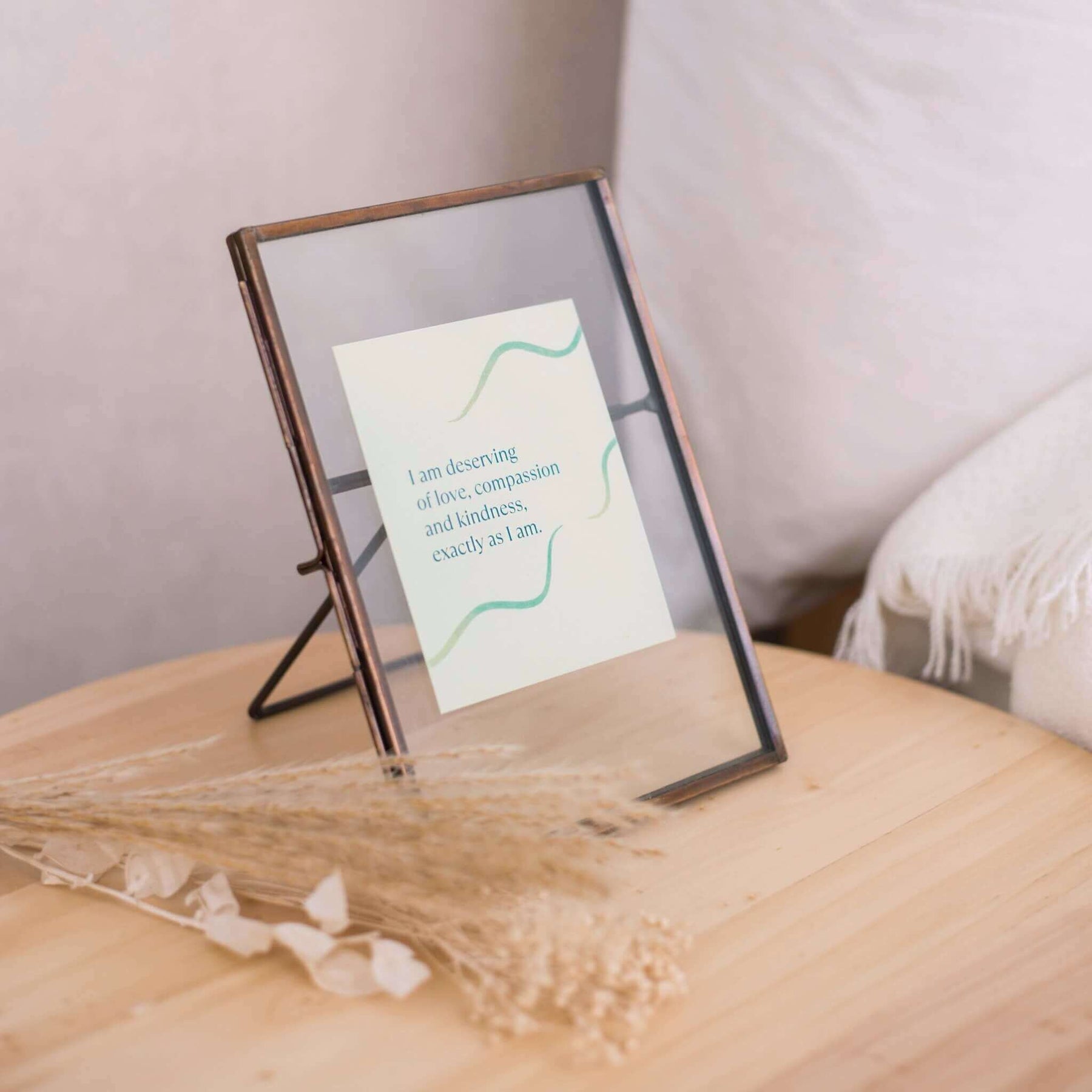 Imagine giving a gift that offers daily doses of compassion and inspiration. The Give Yourself Kindness affirmation cards come in a luxurious glass and metal frame, providing a beautiful reminder to display in any home. This thoughtful affirmation gift supports the recipient in finding self-compassion and calm.