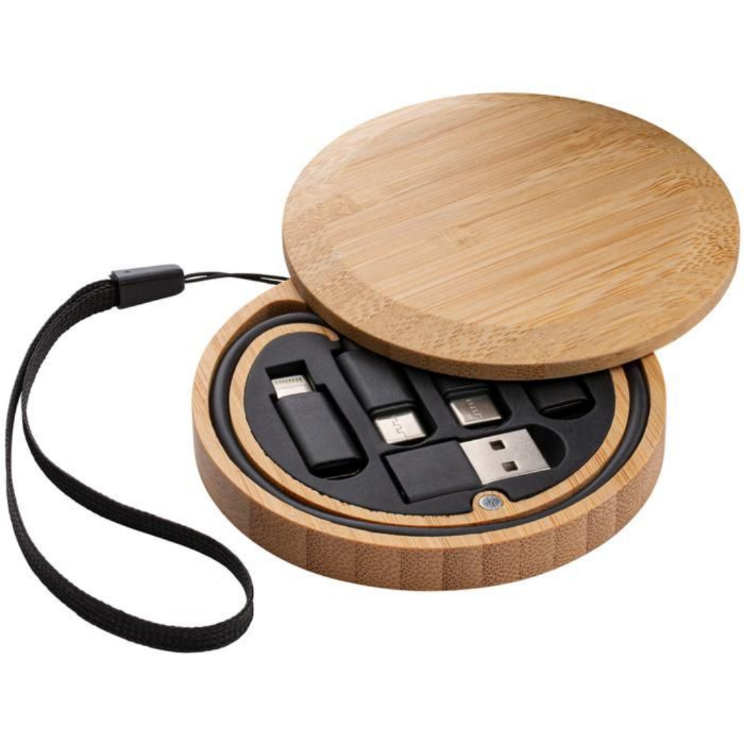 Experience the ultimate convenience with our 6 in 1 charging cables, all neatly packed in a pocket-sized bamboo case with a sleek design. Stand out with our compact size and multiple adapters that cater to various devices, ensuring you stay connected wherever you go.