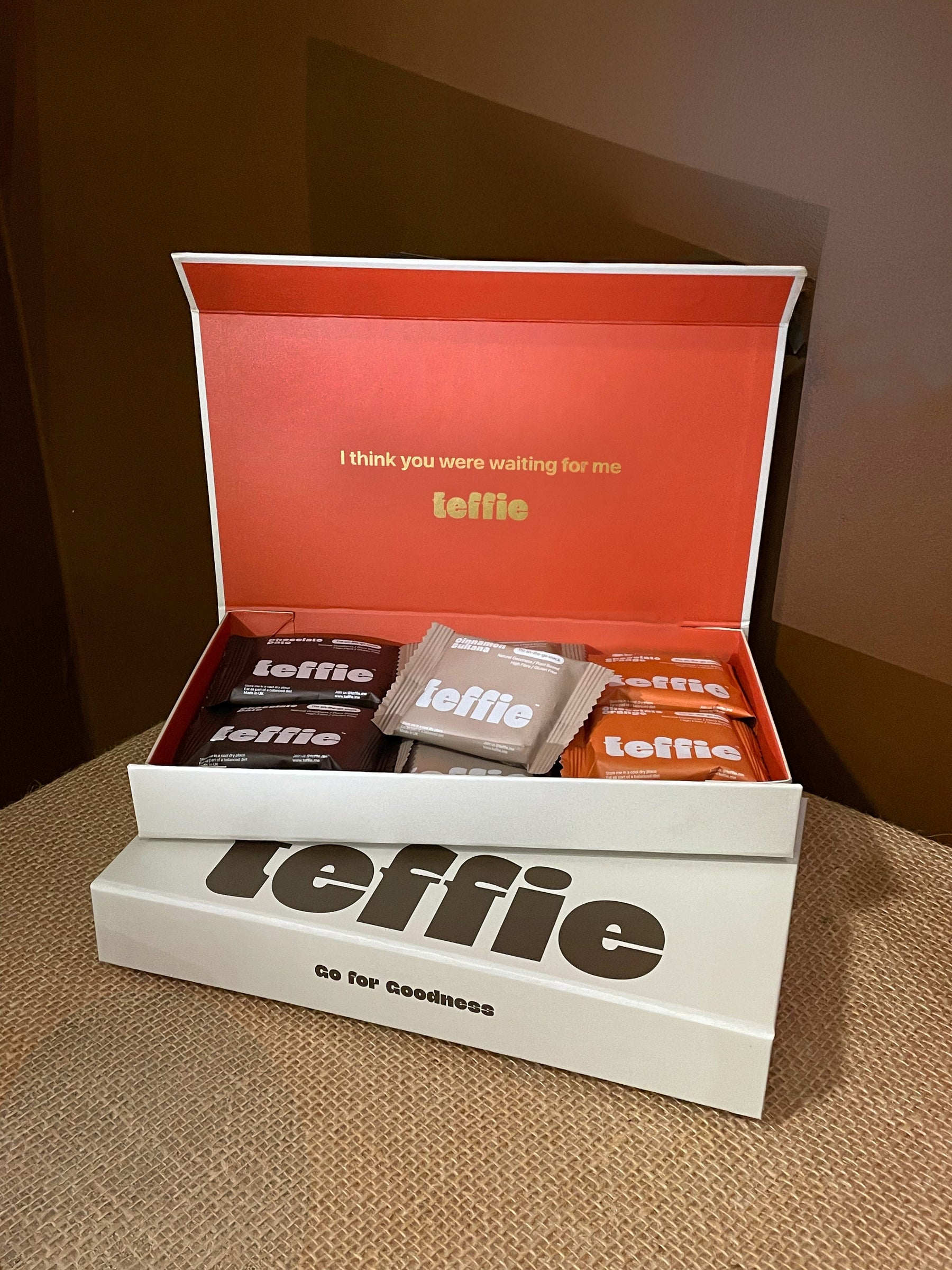 Introduce your loved ones to the ancient grain teff with our Gift Box of 12 Teffies. Each box is packed with 12 delicious on-the-go Teffies, perfect for a healthy 2025. Whether they're heading to the gym or the playground, these Teffies will keep them nourished. Choose from a mixed selection or single flavours. Available in High Fibre, Plant Based, Gluten Free, and full of Natural Goodness. Please note, gift wrapping is not included.