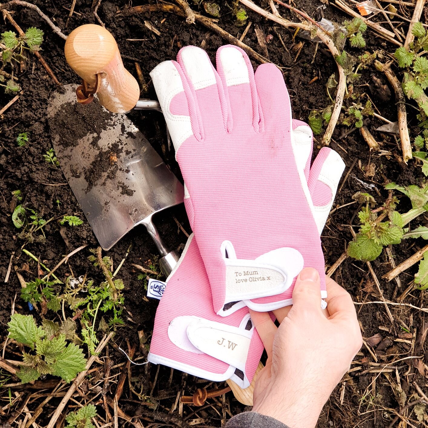 Get ready for spring with our Personalised Leather Gardening Gloves! Designed for durability and comfort, these gloves are perfect for tackling any gardening task. Choose from a selection of fonts to personalise them for yourself or as a unique gift. Available in green (large) and pink (medium), these gloves feature leather palms, durable spandex backs, and an adjustable velcro strap. Please note, these gloves are not recommended for machine wash. Make gardening a breeze with our Personalised Leather Gardening Gloves!