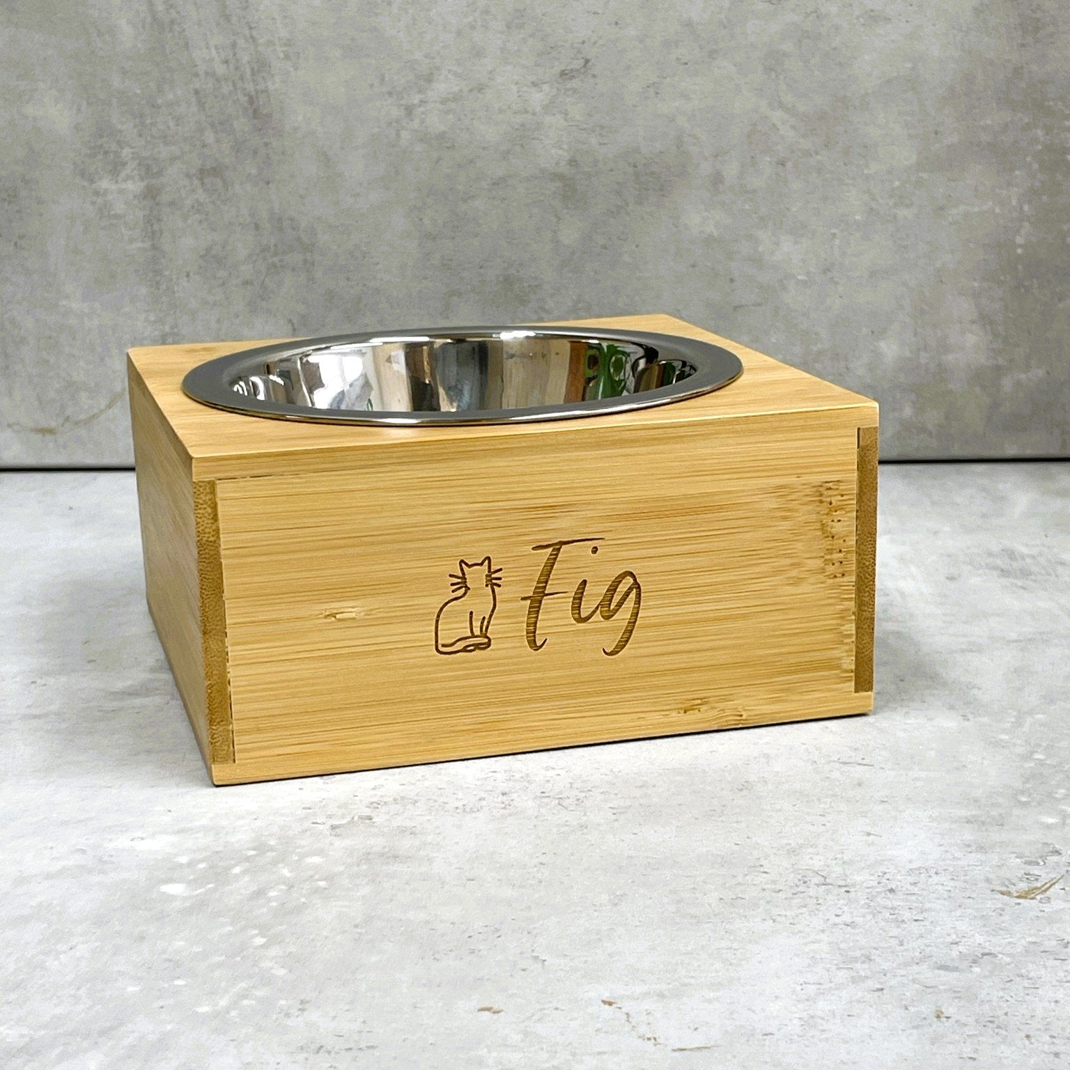Enhance your pet's mealtime with our Personalised Wooden Animal Bowl Holders! Expertly designed for cats and dogs, these stylish holders are a must-have for any pet-friendly home. Personalise them with your pet's name for a special touch that shows you care. Add a cat logo or a dog paw to bring out your pet's unique personality. Choose from a single or double bowl holder to suit your needs. Make mealtime special for your furry friends with these lovingly crafted bowl holders!