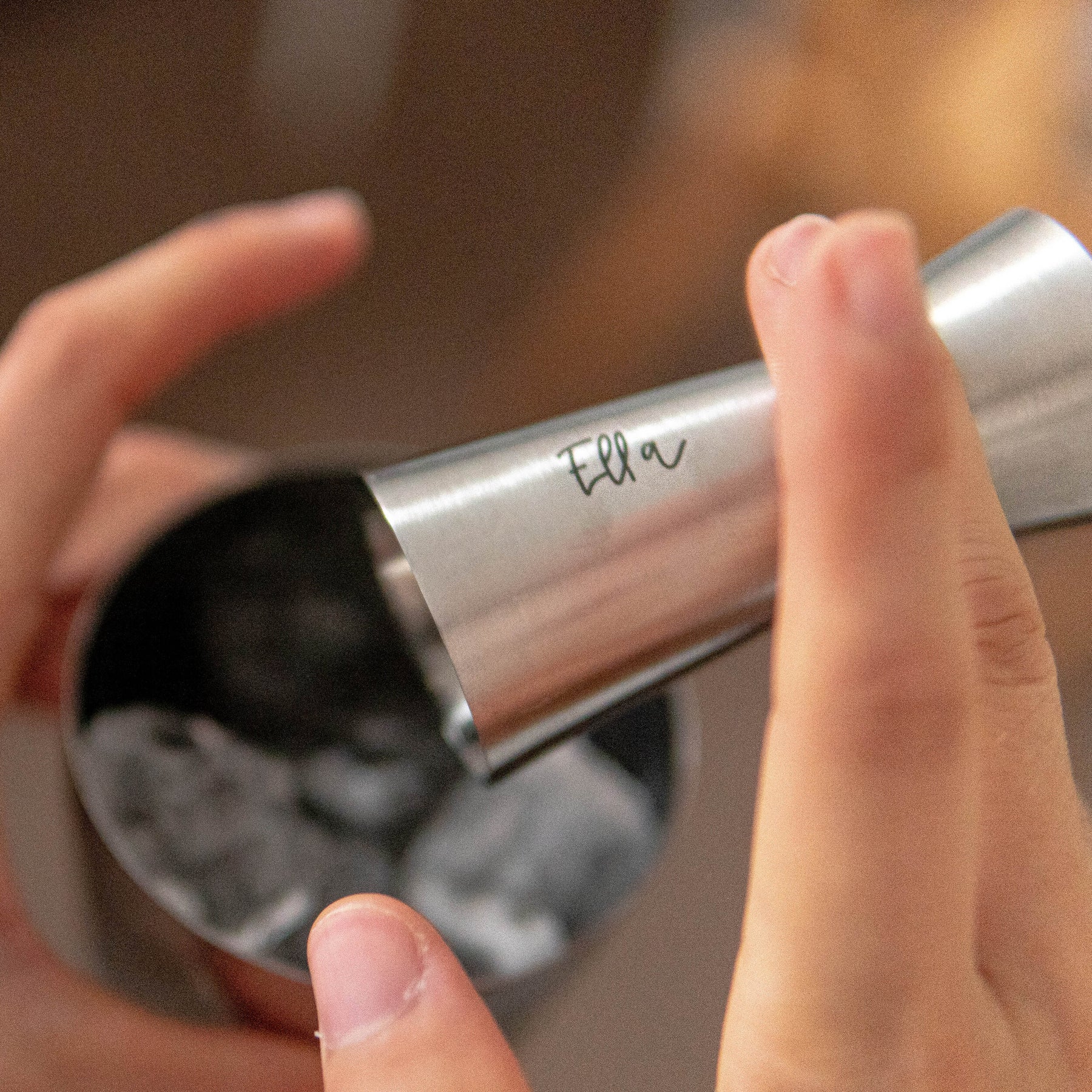 Introducing our Stainless Steel Personalised Cocktail Set, a must-have for mixologists of all levels. Whether it's for a home bar enthusiast or a professional cocktail bar, this set includes ice tongs, a jigger, a bar stirrer, a strainer, and a 500ml 3-piece cocktail shaker. The shaker features three compartments for secure mixing and a lightweight, ergonomic design for effortless flair. Personalise the cocktail shaker with a special message using any of our 3 fonts, and add initials to the jigger for a unique touch. Elevate your mixing game with this stylish and functional set - the perfect gift for those who love to shake things up!