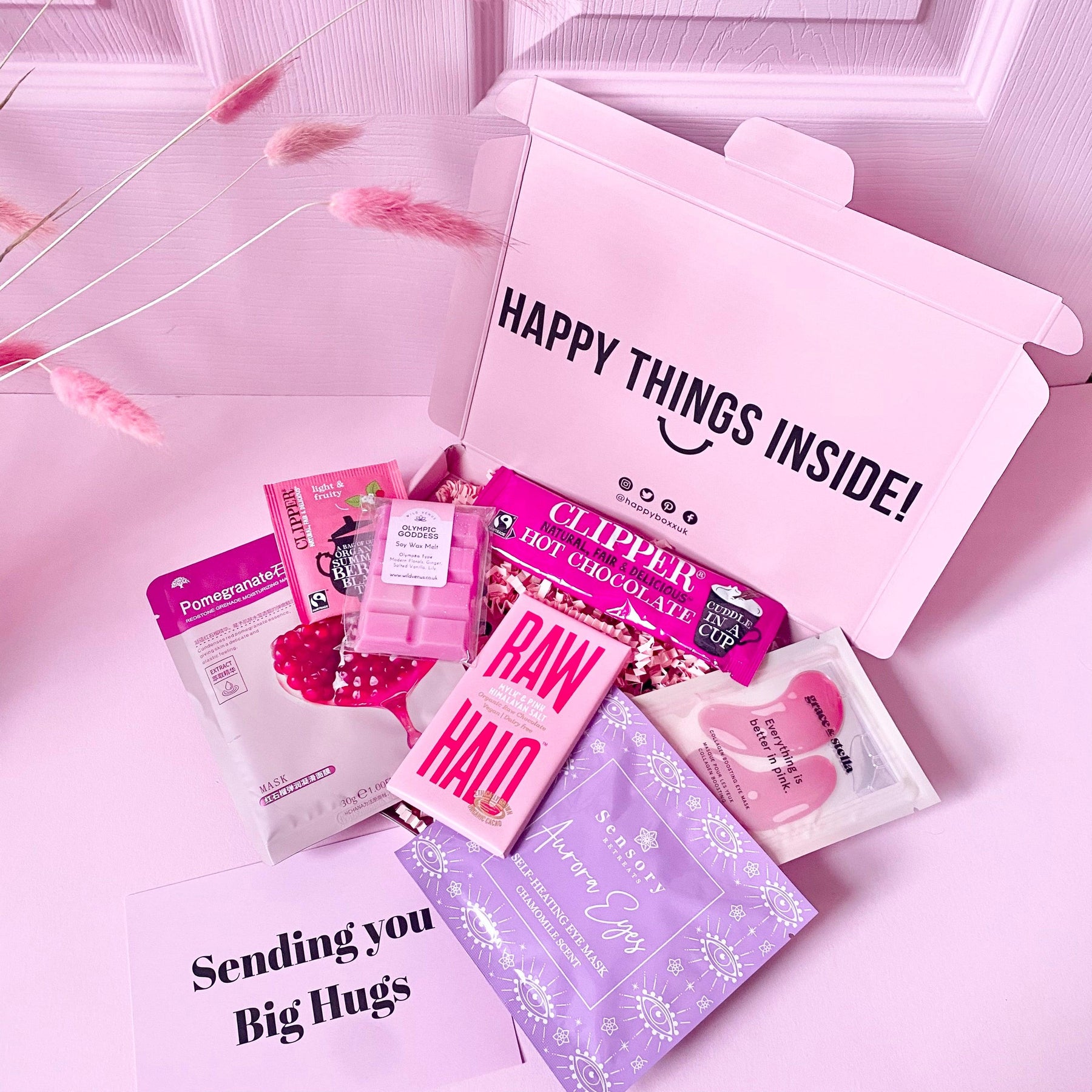Introducing the Pink Hugs Box, a delightful 'thinking of you' gift filled with self-care pamper treats to help your loved one relax and recharge. This letterbox gift ensures a hassle-free delivery right to their doorstep, bringing a smile to their face.